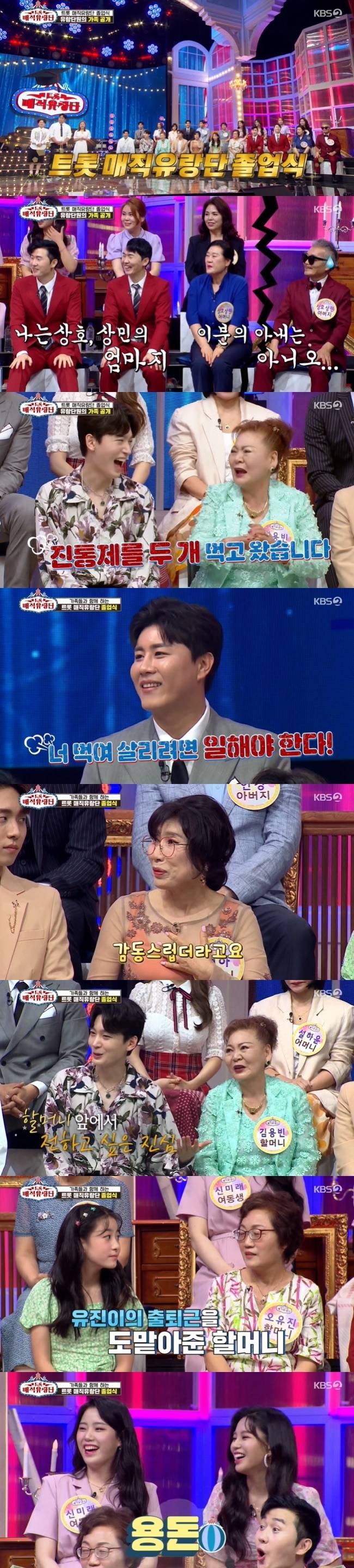 7월 24일 방송된 KBS 2TV ‘트롯 매직 유랑단’에서는 가족들과 함께 하는 트롯 매직유랑단의 졸업식이 진행 됐다.