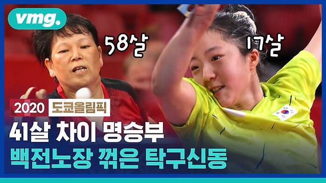 올해 17살, 탁구 신동 신유빈 선수가 탁구 여자단식 2회전(64강전)에서 관록의 룩셈부르크 국가대표인 58살 니시아리안 선수와 만나 풀세트 접전 끝에 승리하고 3라운드에 진출했습니다. 이번이 5번째 올림픽 출전인 니시아리안 선수는 베테랑답게 자신의 움직임은 최소화하면서 신유빈 선수의 실수를 이끌어내는 등 첫 세트에선 압승을 거뒀는데요. 신유빈 선수도 이에 뒤질세라 놀라운 집중력으로 대역전극을 이뤄냈습니다. 1시간이 넘는 혈투가 벌어졌던 탁구 여자단식 경기, 그리고 자신의 어머니보다 나이가 많은, 41살 위 상대와 명승부를 펼친 신유빈 선수의 이야기를 비디오머그가 전해드립니다.