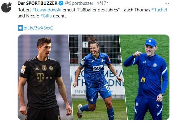 당연히 레반도프스키는 총 563표 중 무려 356표라는 몰표를 받으면서 2021년 독일 올해의 선수에 뽑혔다. 2위는 레반도프스키의 팀 동료 토마스 뮐러로 41표였고, 3위는 보루시아 도르트문트 간판 공격수 엘링 홀란드로 38표를 획득했다.