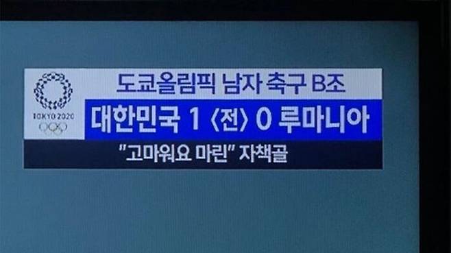 MBC는 또 어제 남자 축구 조별리그 B조 2차전인 한국과 루마니아 간 경기를 중계하면서 광고 중 자책골을 기록한 상대 팀의 마리우스 마린 선수를 겨냥, "고마워요 마린"이라는 자막을 화면 우측 상단부에 삽입해 또 비판을 받았습니다.