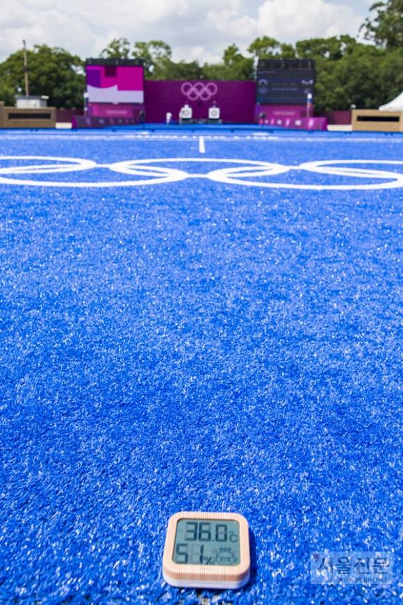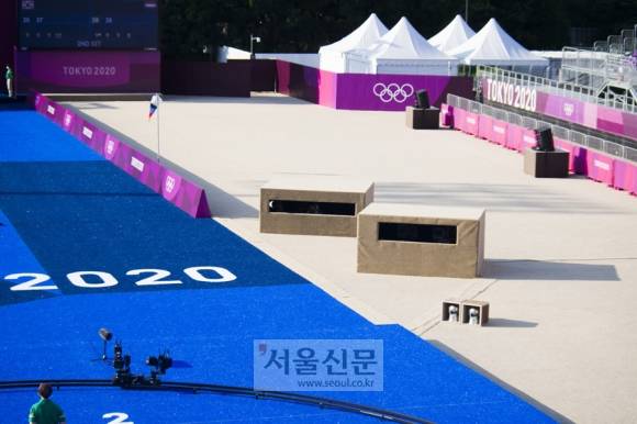 한국의 첫 금메달이 나온 24일 오전 경기가 끝나고 오후 경기가 시작되기 전 한가한 양궁장에 잠시 들렀습니다. 중계화면으로도 보였겠지만 유메노시마 양궁장은 태양을 피하고 싶어도 피할 수 없는 곳입니다.