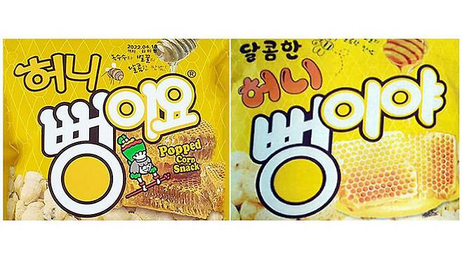 두 제품 모두 ㈜서울식품공업의 '허니 뻥이요', '뻥이요 치즈' 등과 흡사합니다.