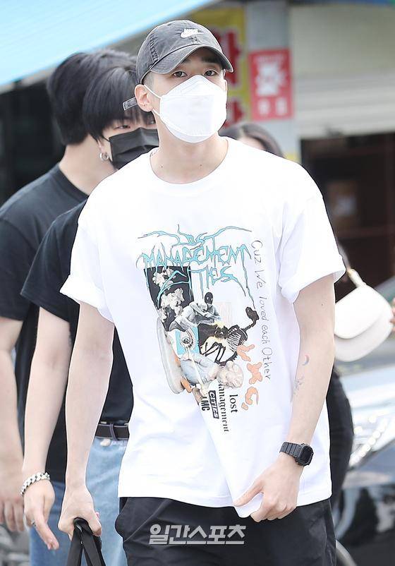 그룹 빅톤 한승우가 28일 오후 충남 육군훈련소 입영심사대로 입소하고 있다. 한승우는 기초군사훈련을 받은 뒤 군악대에서 복무할 예정이다.