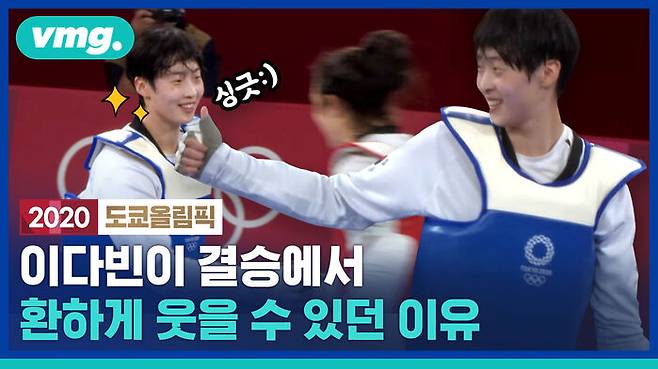 여자 태권도 준결승에서 버저비터 킥을 이용해 역전승했던 이다빈 선수가 지난 27일 밤, 결승전 경기를 위해 무대에 올랐습니다. 긴장이 될 법도 한데 경기장 입장부터 떠날 때까지 매 순간 미소를 잃지 않았습니다. 팽팽한 접전 끝에 은메달을 따내곤 더욱 환한 웃음을 지으며 상대를 축하해주기까지 했는데요, 그녀가 그토록 미소를 지었던 이유를 비디오머그를 통해 확인해보시죠.