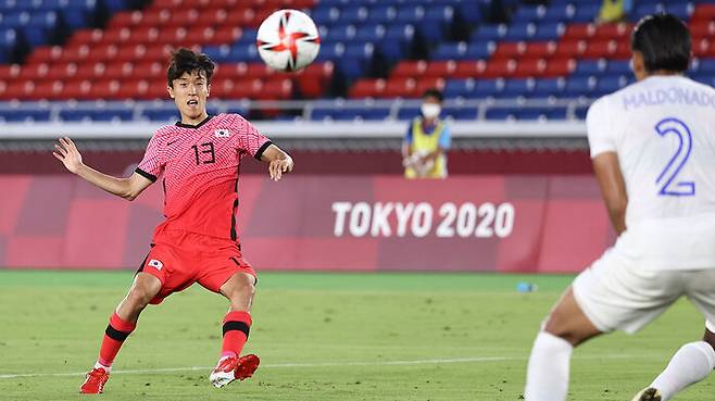 2020 도쿄올림픽 남자축구 조별리그 최종전에서 첫 출전 기회를 얻어낸 김진야(서울)가 득점포까지 터트리면서 활짝 웃었습니다.