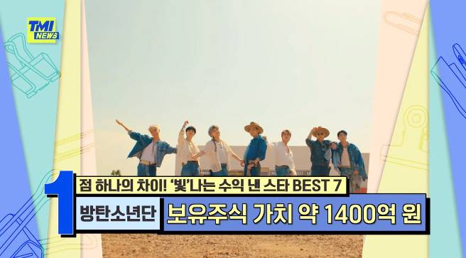 'TMI 뉴스' 방탄소년단이 빛나는 수익낸 스타 1위에 등극됐다.