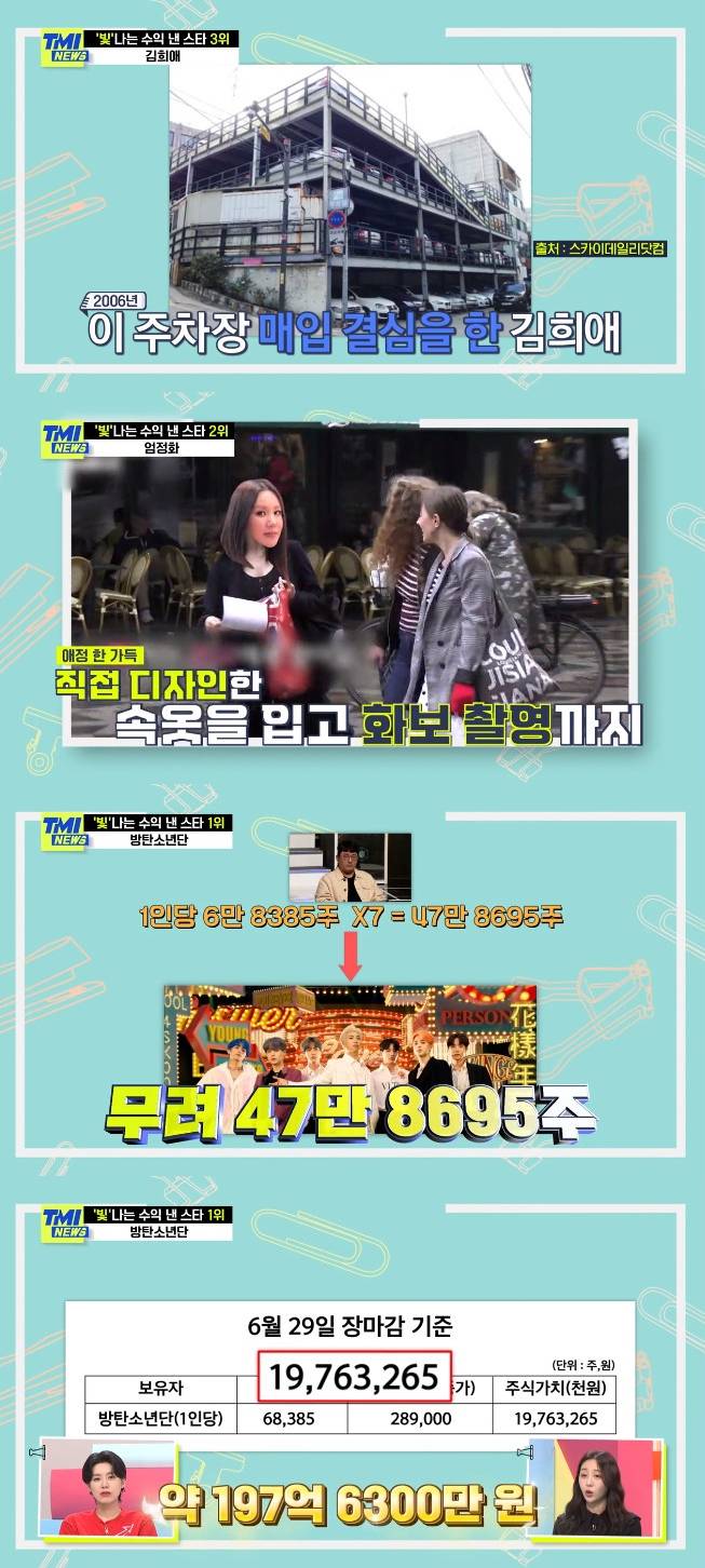 방탄소년단 주식=1400억→엄정화, 속옷사업 100억 매출 (TMI뉴스)[종합]