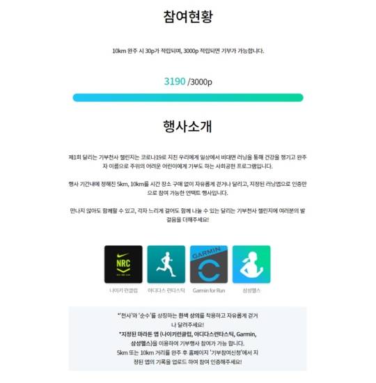 달리기로 이웃 사랑 실천하는 '달리는 기부천사 챌린지' 참여율 초과 달성
