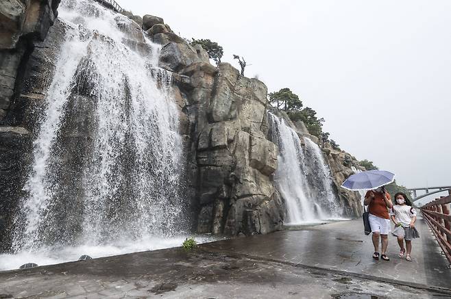 연일 무더위가 계속되고 있다. 시원한 폭포수 아래서 더위를 날려버리고 싶다면 인천 계양구 경인아라뱃길 아라폭포에 가보자.