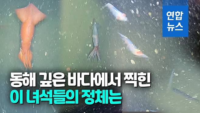 (서울=연합뉴스) 우리나라에서는 처음으로 동해 수심 1천m 지점에서 심해오징어가 카메라에 잡혔습니다.