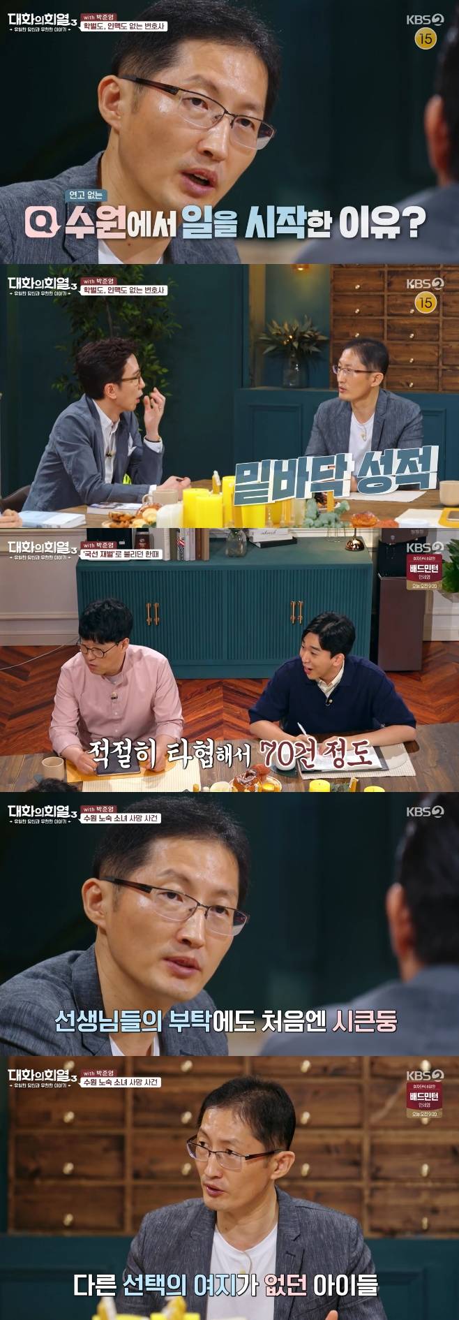 29일 밤 방송된 KBS2 예능프로그램 '대화의 희열3' 최종회에서는 박준영 변호사가 출연해 이야기를 나눴다.