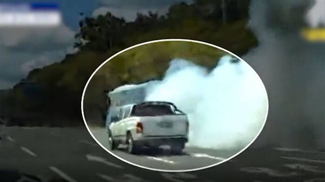 도로 위 버스, 그 뒤로 연기가?..아찔했던 순간