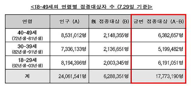 우선 18세∼49세 국민 1천777만 명(지자체 자체 접종 200만 명 포함)에 대한 1차 접종이 다음 달 26일부터 9월 30일까지 시행됩니다.