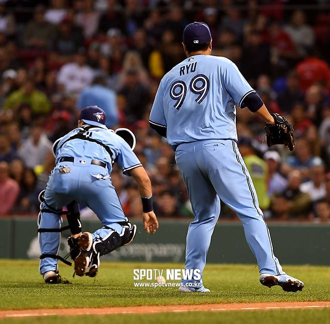 경기 시작 전부터 비가 내렸던 펜웨이 파크. 경기 도중에도 비가 내렸다 그쳤다를 반복하는 얄궂은 날씨였습니다. 동료들의 실책성 수비도 나왔습니다. 하지만 류현진은 흔들리지 않고, 준비한 대로 경기를 운영했습니다.