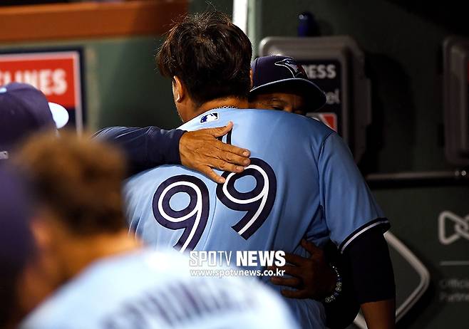 몬토요 감독은 악수 대신 포옹을 했습니다. 이유가 있었습니다. 전날 조부상을 당한 류현진이 힘든 상황에서도 훌륭한 피칭을 해준 것이 대견했습니다.