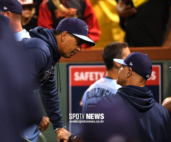 찰리 몬토요 감독이 류현진과 허그를 하며 교체를 알리자, 동료들도 류현진과 하이파이브를 했습니다. 선수들은 7회에도 류현진이 마운드에 오를 거라 생각했던 것으로 보입니다. 로비 레이, 알렉 마노아도 뒤늦게 류현진 교체 소식을 듣고 하이파이브를 했습니다.