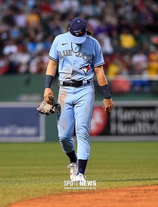 1회 2사 2루에서 J.D. 마르티네스의 평범한 땅볼을 유격수 보 비셋이 공을 더듬어 출루를 허용했습니다. 2사 1, 2루가 된 것입니다. 누가 봐도 쉽게 처리할 수 있었던 타구였지만, 보 비셋의 실책이 발생했고, 보 비셋도 고개를 숙이며 자책했습니다.