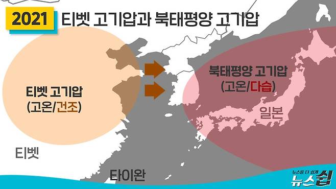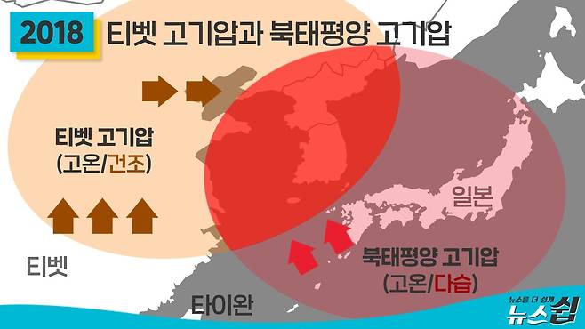 우리나라 땅 위에 더운 바다의 습기를 잔뜩 머금은 북태평양 고기압이 자리잡았는데, 그 위에 다시 내륙의 뜨거운 공기를 품은 티벳 고기압이 쌓여 열돔을 형성했던 것이다.