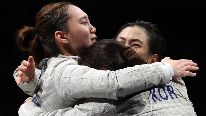 31일 지바 마쿠하리 메세 B홀에서 열린 펜싱 여자 사브르 단체 8강전, 대한민국의 김지연, 윤지수, 서지연, 최수연 선수가 출전했습니다.