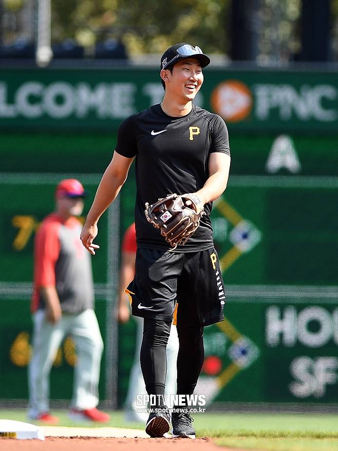 1일 펜실베이니아주 피츠버그의 PNC 파크에서 만난 박효준은 안도의 미소를 지었습니다.