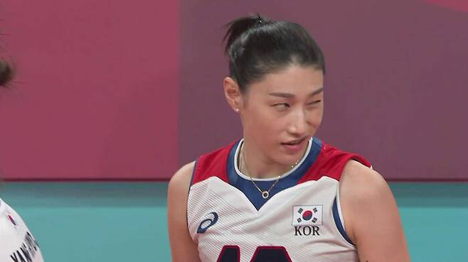 세르비아에게 1세트를 내준 후 2세트가 시작되었습니다. 2세트의 첫 득점을 올리는 김연경 선수입니다.