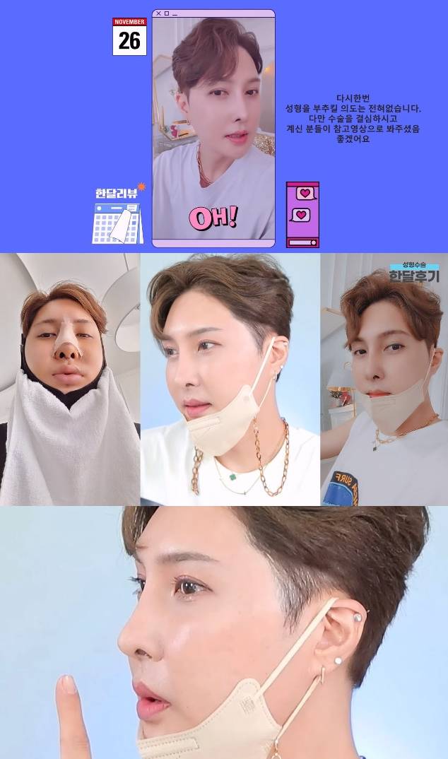 본격적인 후기에 앞서 김기수는 자막을 통해 '성형을 부추길 의도는 전혀 없었습니다. 다만 수술을 결심하시고 계신 분들이 참고 영상으로 봐주셨으면 좋겠다'라고 전했다.