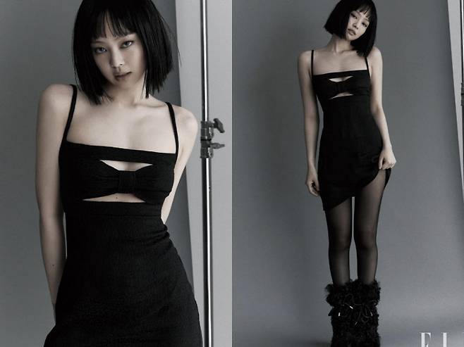 사진 속 제니는 단발머리를 한 채 카메라를 그윽하게 바라보며 섹시미를 뽐냈다. 여기에 스모키 화장과 검정 드레스가 더해져 시크한 무드를 연출했다.