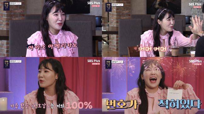 이내 도사팅남과 만남이 시작되고, 이은지는 얼음을 듬뿍 넣은 아이스 아메리카노 주문하며 호감을 드러내 화기애애한 분위기를 이끌었다.