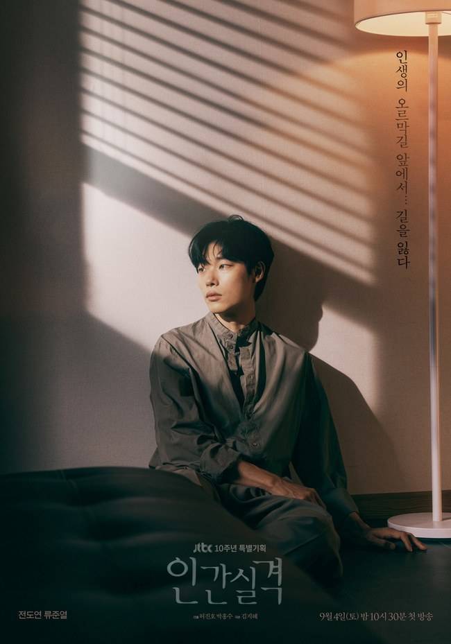 JTBC 10주년 특별기획 '인간실격'(극본 김지혜/연출 허진호 박홍수) 측은 8월 4일 인생의 중턱에서 길을 잃은 부정(전도연 분)과 강재(류준열 분)의 캐릭터 포스터를 공개했다.