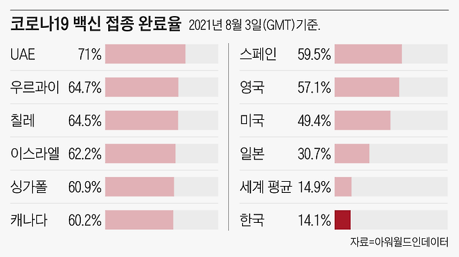 한국 접종완료율 14%에 불과한데.. 文대통령 "백신문제 해결 앞장설 것"