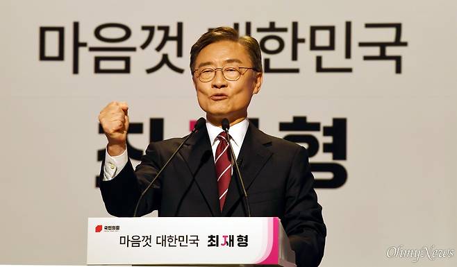| ▲ 국민의힘 대선 예비후보인 최재형 전 감사원장이 4일 오후 경기도 파주 미라클스튜디오에서 대선 출마선언을 했다. |