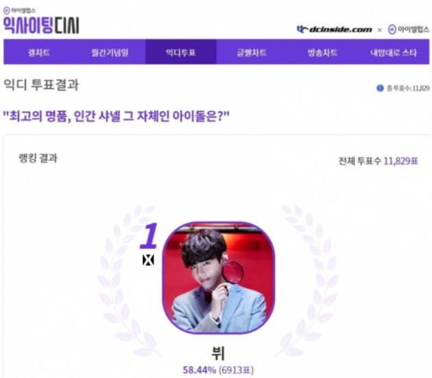 뷔는 지난 7월 25일부터 7월 31일까지 익사이팅디시에서 진행된 '최고의 명품, 인간 샤넬 그 자체인 아이돌은?' 이라는 주제의 투표에서 총 투표수 1만 1,829표 중 6,913표를 획득해 압도적인 득표수로 1위에 등극했다.
