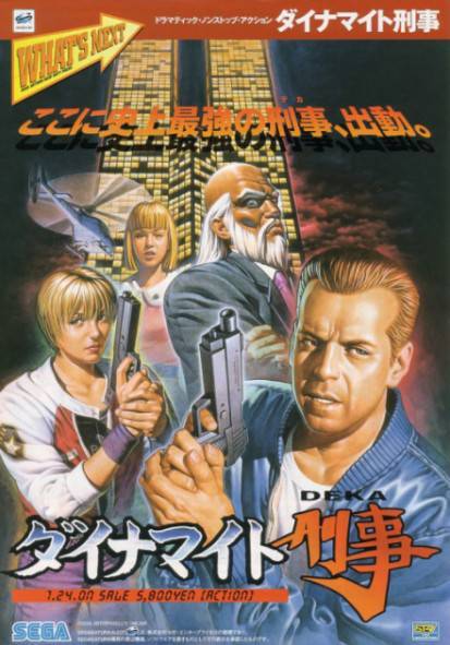 꿀딴지곰 : '스플래터 하우스'의 충격이 아직 가시지 않았지만, 다음으로 넘어가보겠습니다. 이번엔 국내에서도 오락실에서 꽤 인기가 많았던 3D 벨트스크롤 액션 게임이죠. '다이나마이트 데카' 입니다. '다이하드 아케이드'라고 불리우기도 하죠. 실제 영화 다이하드 IP를 활용했는데요, 이미지에 브루스 윌리스도 얼핏 엿보이는 이유도 그게 아닐까 싶습니다.