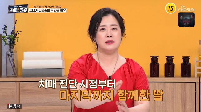 병간호 하며 힘들었던 순간으로는 수면을 꼽으며 "아버지가 밤에 잠을 안 재우시더라. 아버지가 대소변을 못 가리시니까 하루에 이불 빨래만 8, 9채를 했다. 그러면서 잠을 잃고 제 자신 자체를 잃었다"고 당시를 회상했다. (사진=TV조선 '순간의 선택 골든타임' 캡처)