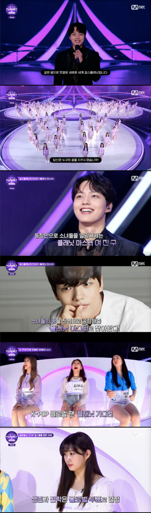 플래닛 마스터 여진구는 “언어도 문화도 다른 99명의 소녀들이 같은 꿈으로 연결된 새로운 세계 걸스플래닛입니다. 걸스플래닛의 언어는 단 하나, K-POP입니다. 케이팝으로 소통하며 글로벌 걸그룹이라는 목표를 향하는 소녀들, 이제 여러분은 이 소녀들이 연결되고 조합되며 성장하는 3개월의 여정을 지켜보게 될 거다."라고 말했다.