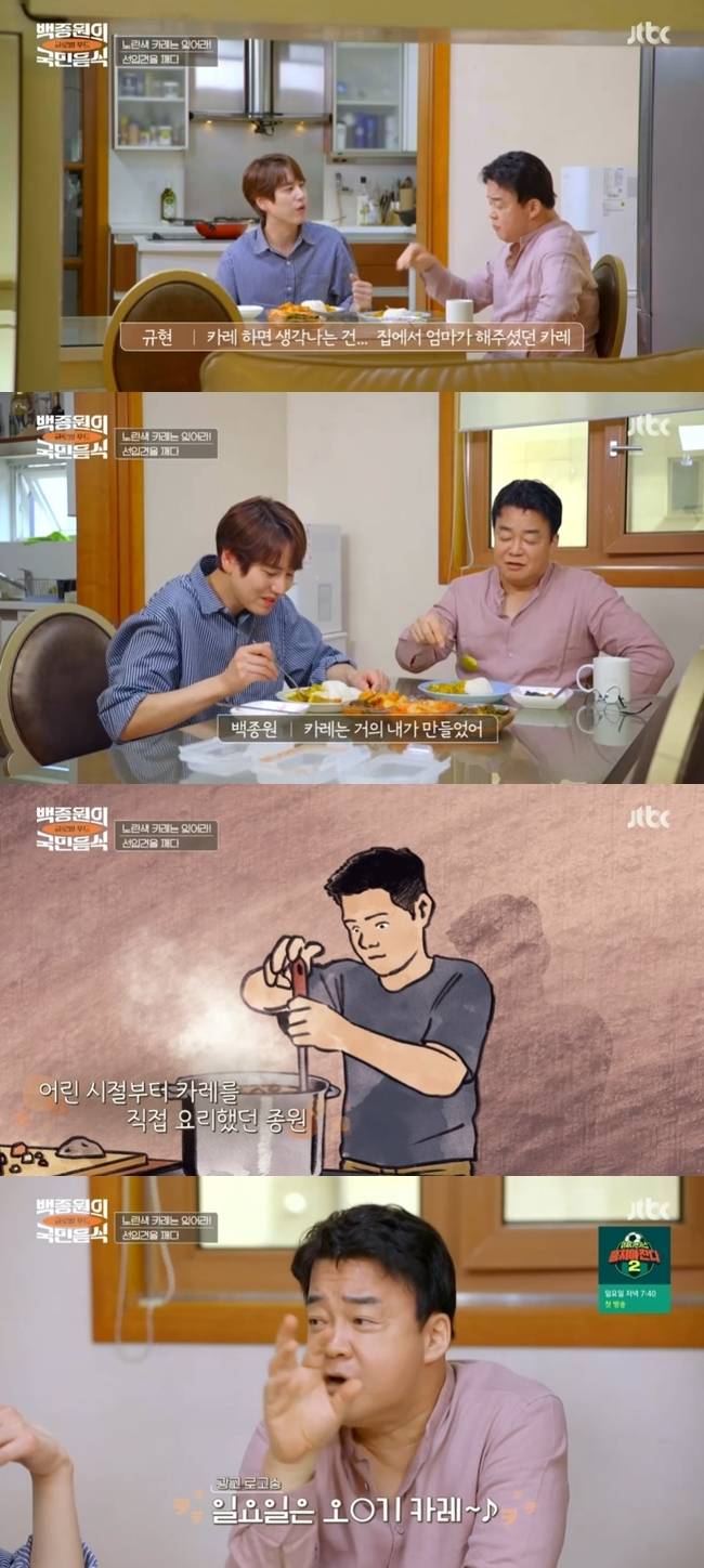 8월 6일 방송된 JTBC '백종원의 국민음식 - 글로벌 푸드 편'에서 백종원은 규현 집에 방문해 카레에 얽힌 추억을 떠올렸다.