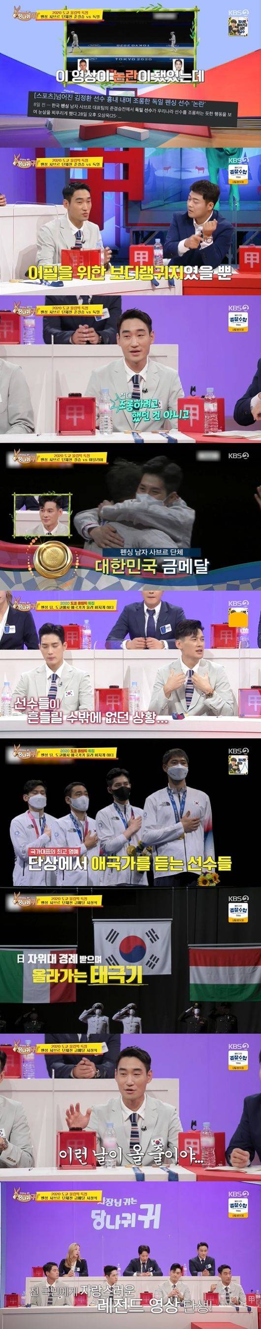 이어 영광의 단체전 금메달 획득 장면이 등장했고, 김정환은 "올림픽 끝나고 저 영상을 볼 때마다 계속 눈물이 난다. 준결승전에서 누구하나 잘한 게 아니고 다 같이 똘똘 뭉쳐서 금메달을 땄다는 것에 대해 동생들이 대견하고 고맙다. 그래서 저 영상을 볼때마다 눈시울이 붉어진다"고 고백했다.