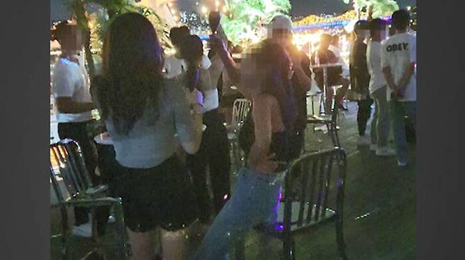 저녁 6시 이후 3명 이상 모일 수 없는데도, 젊은 남녀 수십 명이 모여 춤을 추며 파티를 벌입니다.