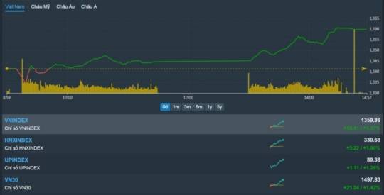 9일 베트남증시 VN지수는 전날보다 1.37% 상승한 1359.86에 장을 마감했다.