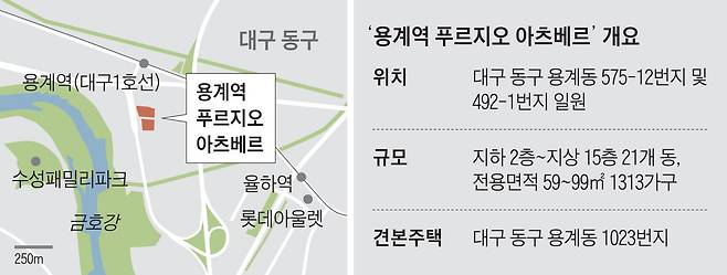 대우건설이 대구 동구에서 용계동 도시개발사업의 하나인 ‘용계역 푸르지오 아츠베르’를 분양 중이다. A1·A2블록에서 2개 단지를 조성하며 지하 2층~지상 15층 21개 동(棟)에 전용면적 59~99㎡ 1313가구가 들어서는 대단지 아파트다. 1단지는 12개 동 745가구, 2단지는 9개 동 568가구로 구성된다. 1단지는 전용 59㎡ 116가구, 전용 74㎡ 82가구, 전용 84㎡ 505가구, 전용 99㎡ 43가구가 분양 예정이다. 2단지는 전용 59㎡ 78가구, 전용 84㎡ 448가구, 전용 99㎡ 42가구가 들어선다. 분양가는 전용 84㎡ 기준으로 4억108만원~4억7195만원으로 합리적인 수준이라는 평가를 받는다. 계약금 10%, 중도금 50%, 잔금 40%로 진행된다.
