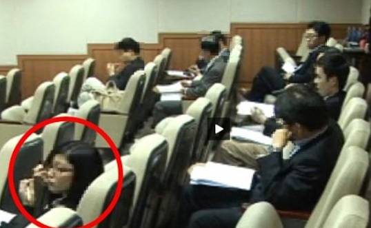 | ▲ 사진은 정경심 변호인단이 서울대 학술대회 동영상에 등장한 빨간 동그라미 속 인물이 딸 조민씨라며 공개한 동영상 캡처본 |