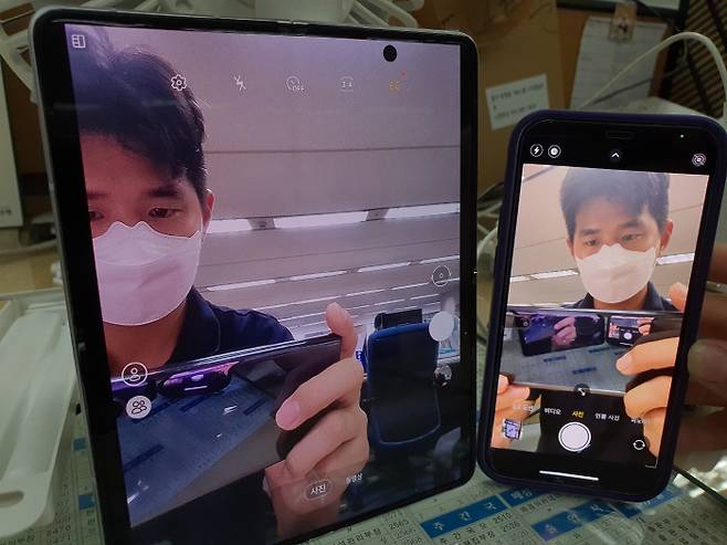 실제로 삼성전자도 카메라에 대해서 펼친 상태에서의 전면 카메라는 400만 화소로, 다른 카메라 화소(1000만~1200만)보다 낮다고 설명했다.