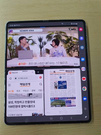 삼성전자 차세대 폴더블폰인 갤럭시Z폴드3, Z플립3는 '혁신' 그 자체였다. 핸드폰을 아무리 접고 펴도 흠이 나지 않았고 최대 3개에 달하는 화면분할을 통해 여러 기능을 한 번에 사용할 수 있는 것도 마음에 들었다. Z플립3를 쓸 때 핸드폰을 접은 상태에서 셀카를 찍을 수 있다는 것도 좋았다. 다만 세간의 우려처럼 Z폴드3를 펼친 상태에서 셀카를 찍을 때는 다소 화질이 떨어지는 느낌을 받았다. Z폴드3 화면분할을 사용하다가 이를 종료하고 싶을 때 하단의 탭을 활용해야만 끌 수 있는 것도 불편함으로 다가왔다.
