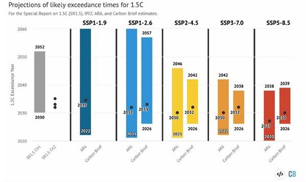 | ▲ SSP 시나리오별 1.5도 도달 시점 예측치 |