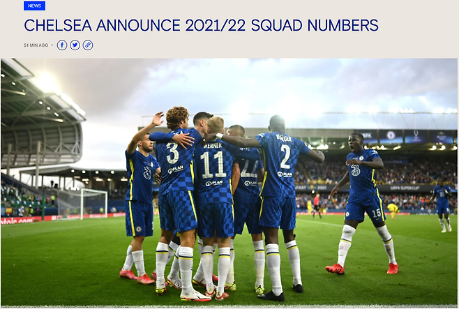 첼시는 14일(한국시간) 공식 홈페이지를 통해 2021-22시즌 선수단 등번호를 발표했다.