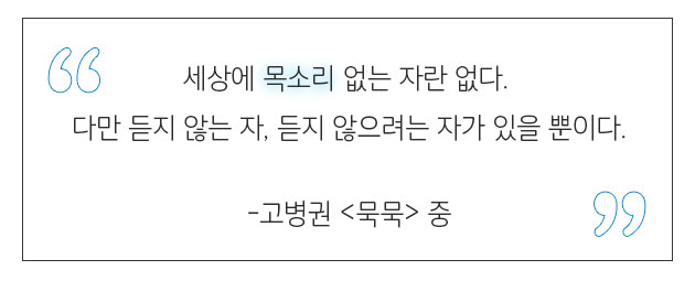 '이 사람들은 이미 자기만의 방식으로 말하고 있는데, 이걸 내가 들을 준비가 안 되어 있던 것은 아닌가? 이들은 사실 말을 못 하는 사람들이라고 내가 규정을 하고 있었던 것은 아닌가?'라는 굉장히 큰 반성을 하셨다고 했는데, 저는 딱 그거라고 생각해요.