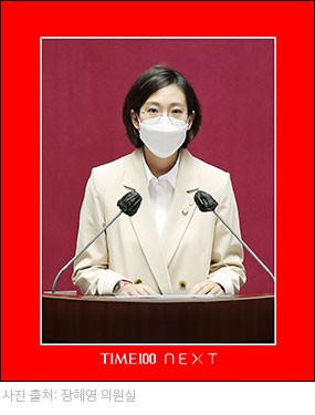 해마다 전 세계 정치‧문화‧스포츠‧학계 등 각 분야에서 떠오르는, 미래가 기대되는 인물 100인을 선정하는 '타임'(TIME)은 장혜영 의원을 "한국에서 가장 젊은 입법가 중 한 명"으로 소개하면서 "장애가 있는 동생이 시설을 벗어나도록 도우며 다큐멘터리를 제작하는 등 인권 운동가로 현재 국회에서 차별금지법 통과를 위해 노력하고 있다"고 설명했습니다.