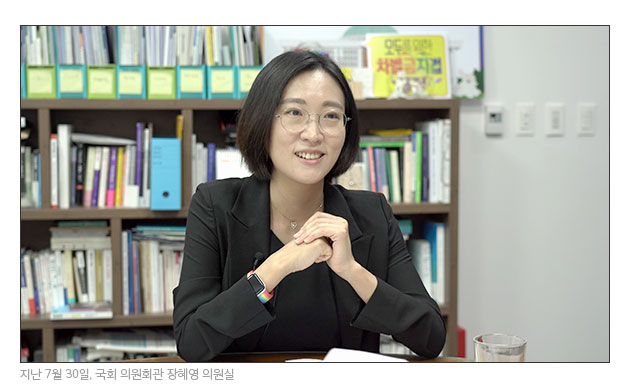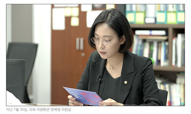 Q. 국회에 들어오기 전에는 다큐멘터리 감독이자 작가, 유튜버 등 여러 활동을 통해 꾸준히 사회적 약자의 문제를 제기해왔습니다. 사회적 약자의 소리를 전한다는 메시지는 같지만, 활동가로서 장혜영과 국회의원으로서 장혜영의 고민과 감정은 많이 달라졌을 것 같은데요?