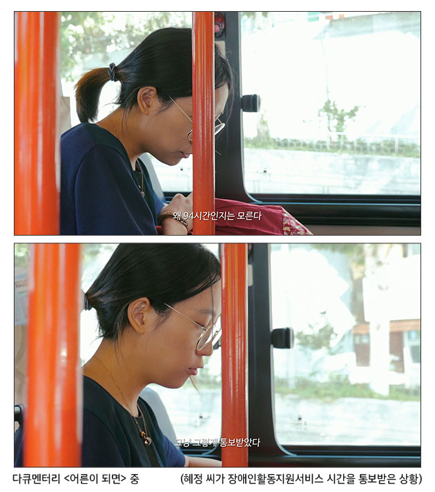 18년 동안 시설에서 갇힌 삶을 살아온 발달장애인인 동생 (장혜정 씨)의 '탈(脫) 시설'을 돕기로 결심하고, 사회 속에서 함께 살아갈 길을 찾기 위해 노력하는 언니 장혜영 씨가 동생과 함께 보낸 400여 일의 일상을 기록한 다큐멘터리. 발달장애인의 탈시설과 자립이라는 화두를 사회에 던졌다.