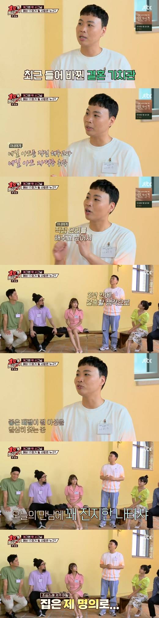 15일 밤 방송된 종합편성채널 JTBC 예능 프로그램 '1호가 될 순 없어'에는 17호 부부 만들기 프로젝트 '개그맨 짝 시그널(개짝시)'가 공개됐다.